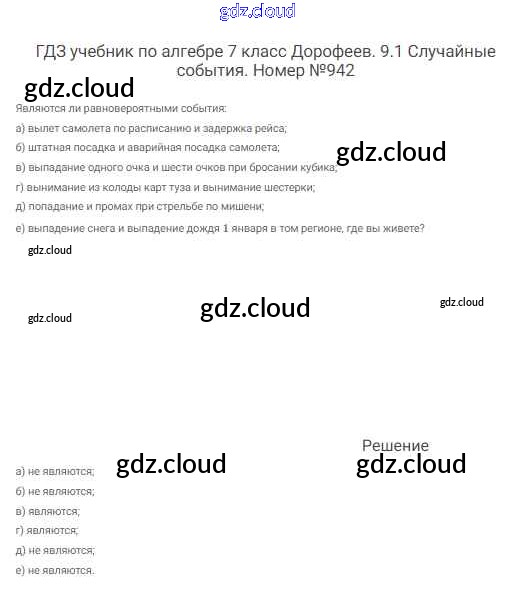 Ответ на задание 942 Учебник Алгебра за 7 (седьмой) класс Дорофеев, Суворова, Бунимович Академический школьный учебник 2020