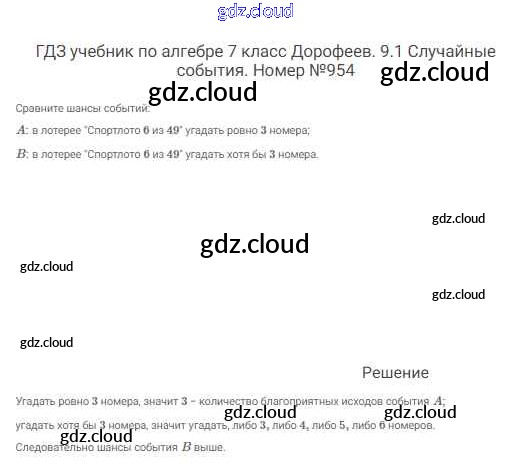 Ответ на задание 954 Учебник Алгебра  за 7 (седьмой) класс Дорофеев, Суворова, Бунимович Академический школьный учебник  2020