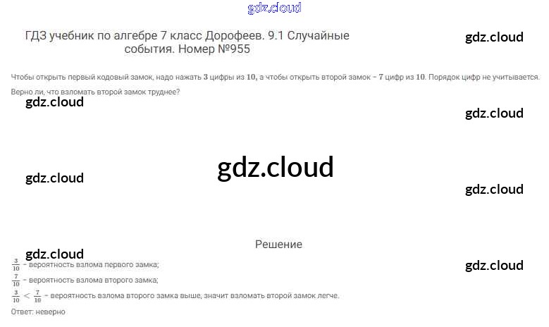 Ответ на задание 955 Учебник Алгебра  за 7 (седьмой) класс Дорофеев, Суворова, Бунимович Академический школьный учебник  2020