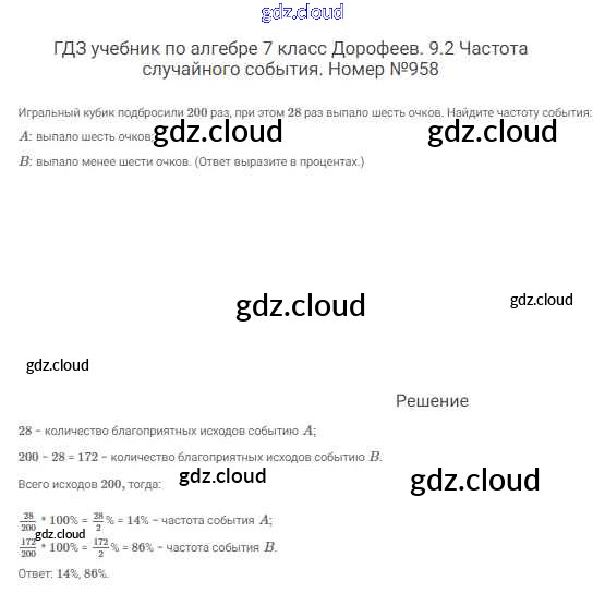 Ответ на задание 958 Учебник Алгебра  за 7 (седьмой) класс Дорофеев, Суворова, Бунимович Академический школьный учебник  2020