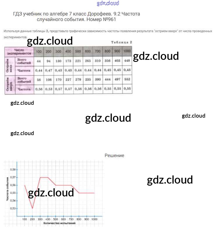 Ответ на задание 961 Учебник Алгебра  за 7 (седьмой) класс Дорофеев, Суворова, Бунимович Академический школьный учебник  2020