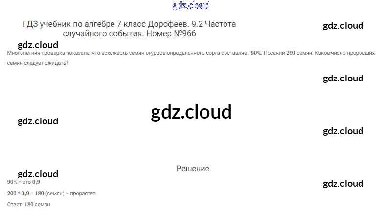 Ответ на задание 966 Учебник Алгебра за 7 (седьмой) класс Дорофеев, Суворова, Бунимович Академический школьный учебник 2020