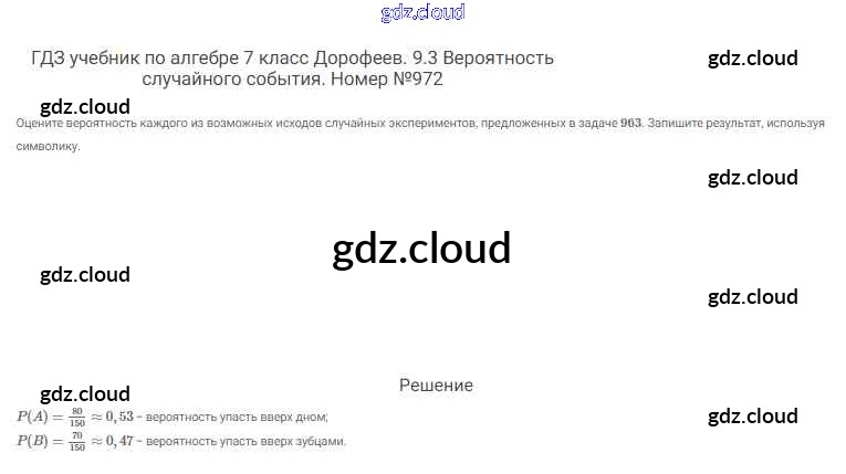 Ответ на задание 972 Учебник Алгебра  за 7 (седьмой) класс Дорофеев, Суворова, Бунимович Академический школьный учебник  2020