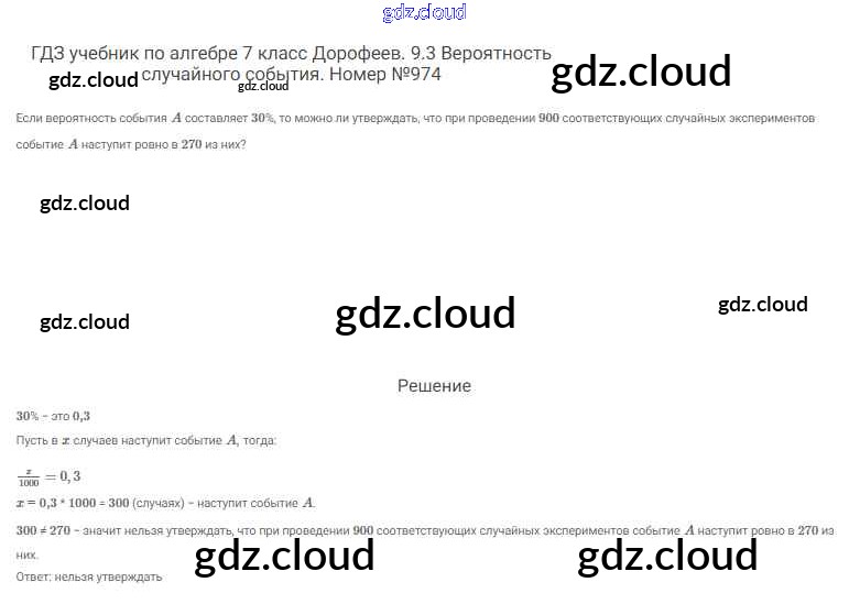 Ответ на задание 974 Учебник Алгебра  за 7 (седьмой) класс Дорофеев, Суворова, Бунимович Академический школьный учебник  2020