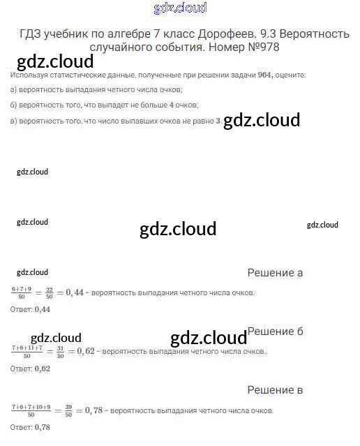 Ответ на задание 978 Учебник Алгебра  за 7 (седьмой) класс Дорофеев, Суворова, Бунимович Академический школьный учебник  2020