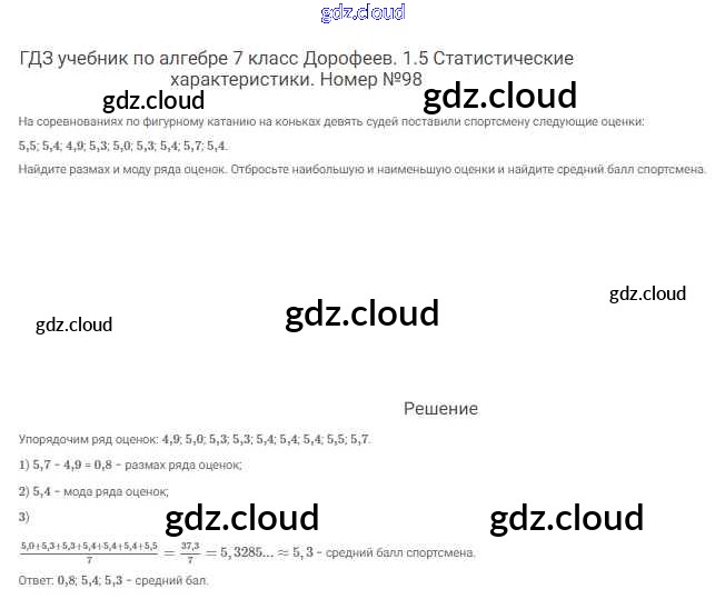Ответ на задание 98 Учебник Алгебра  за 7 (седьмой) класс Дорофеев, Суворова, Бунимович Академический школьный учебник  2020