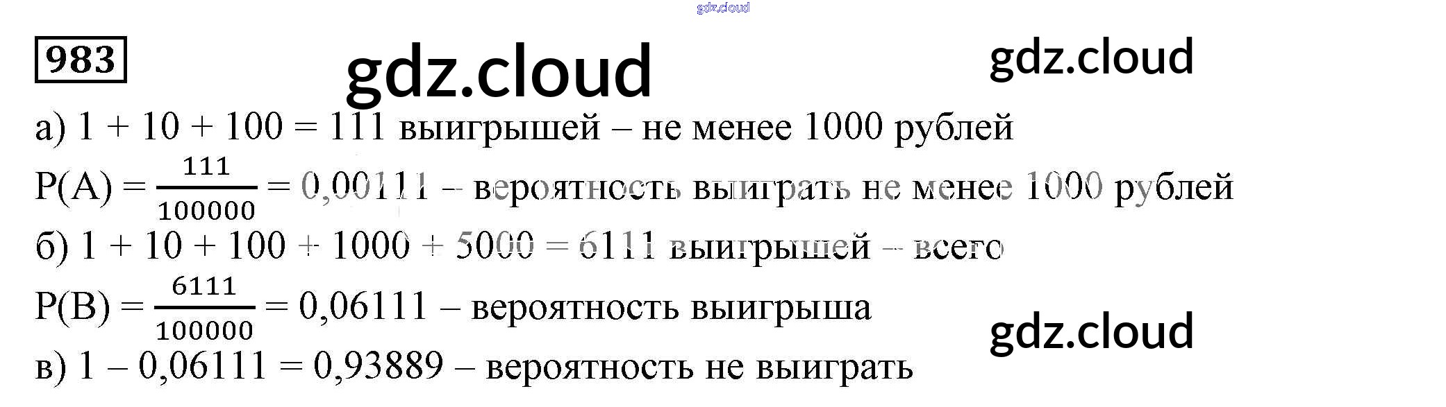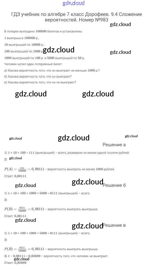 Ответ на задание 983 Учебник Алгебра  за 7 (седьмой) класс Дорофеев, Суворова, Бунимович Академический школьный учебник  2020