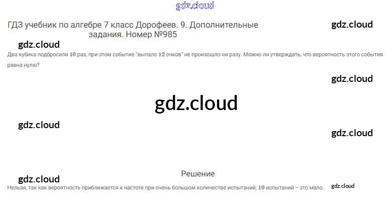 Ответ на задание 985 Учебник Алгебра  за 7 (седьмой) класс Дорофеев, Суворова, Бунимович Академический школьный учебник  2020