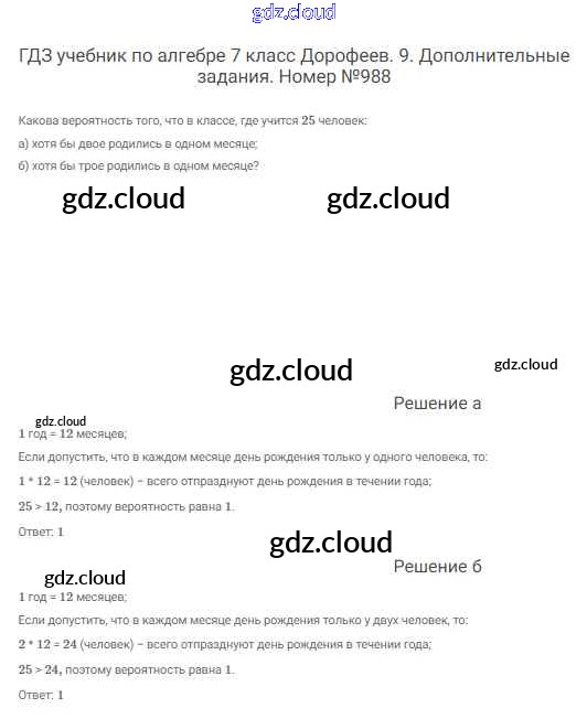 Ответ на задание 988 Учебник Алгебра  за 7 (седьмой) класс Дорофеев, Суворова, Бунимович Академический школьный учебник  2020