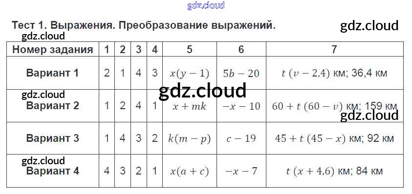 Ответ на задание 1 Тематические тесты Алгебра за 7 (седьмой) класс Дудницын, Кронгауз 2011 ФГОС онлайн и без номера телефона.