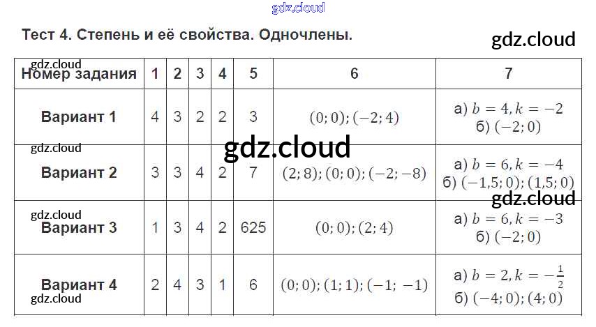 Ответ на задание 4 Тематические тесты Алгебра за 7 (седьмой) класс Дудницын, Кронгауз 2011 ФГОС онлайн и без номера телефона.