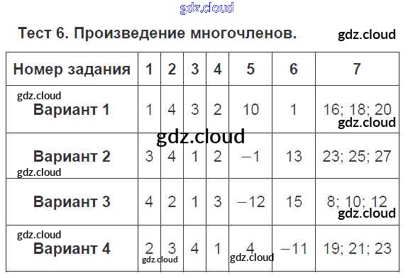 Ответ на задание 6 Тематические тесты Алгебра за 7 (седьмой) класс Дудницын, Кронгауз 2011 ФГОС онлайн и без номера телефона.