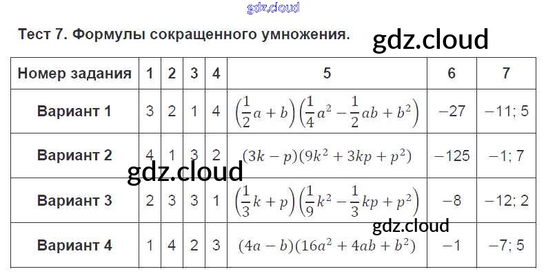 Ответ на задание 7 Тематические тесты Алгебра за 7 (седьмой) класс Дудницын, Кронгауз 2011 ФГОС онлайн и без номера телефона.