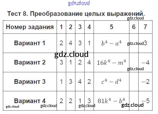 Ответ на задание 8 Тематические тесты Алгебра за 7 (седьмой) класс Дудницын, Кронгауз 2011 ФГОС онлайн и без номера телефона.