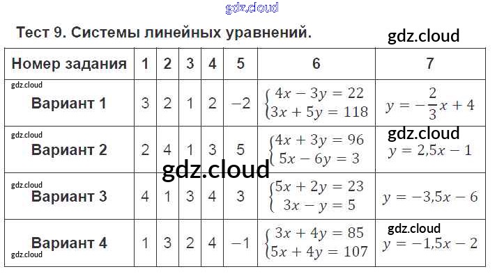 Ответ на задание 9 Тематические тесты Алгебра за 7 (седьмой) класс Дудницын, Кронгауз 2011 ФГОС онлайн и без номера телефона.