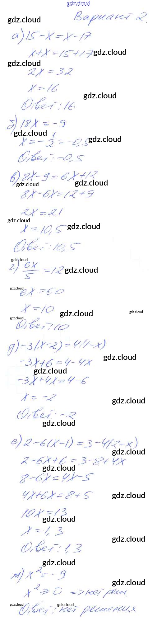 Ответ на задание вариант 2 Дидактические материалы Алгебра  за 7 (седьмой) класс Евстафьева, Карп   2018