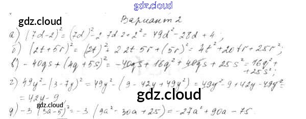 Ответ на задание вариант 2 Дидактические материалы Алгебра  за 7 (седьмой) класс Евстафьева, Карп   2018
