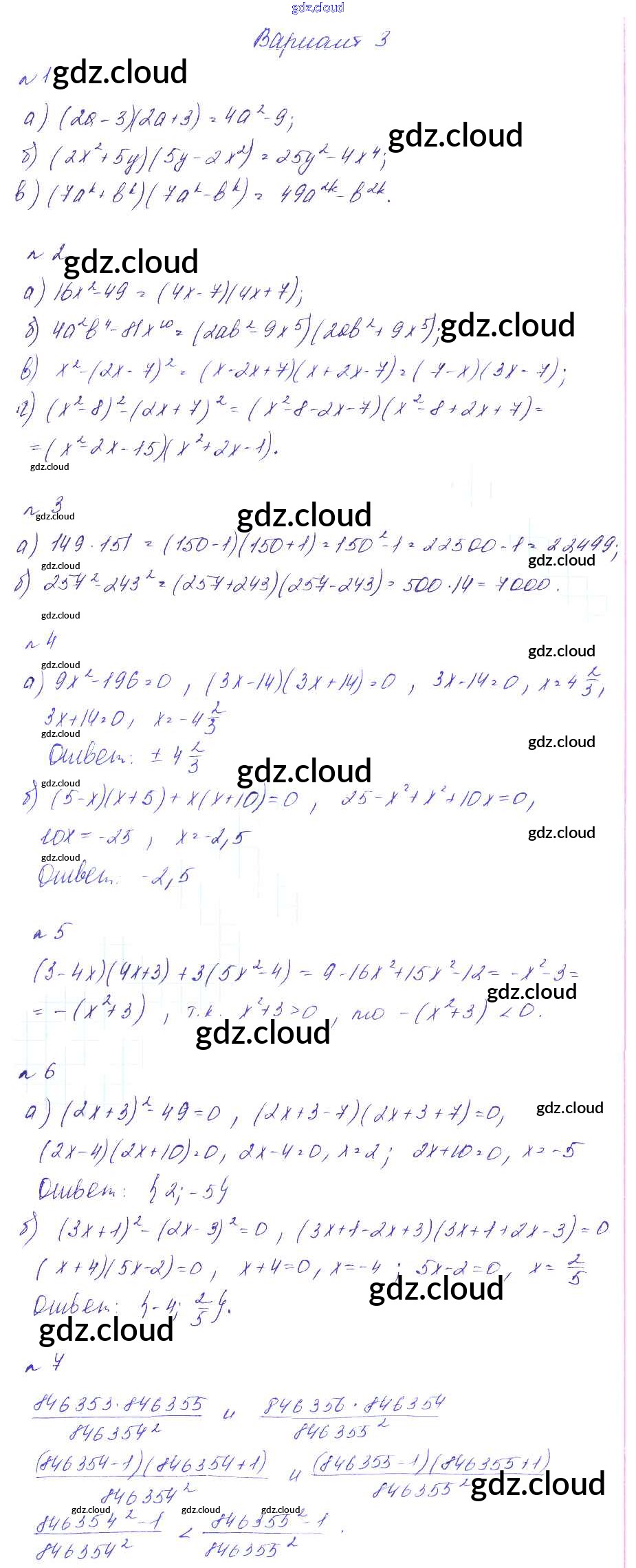 Ответ на задание Вариант 3 Дидактические материалы Алгебра  за 7 (седьмой) класс Феоктистов  Углубленный уровень 2016