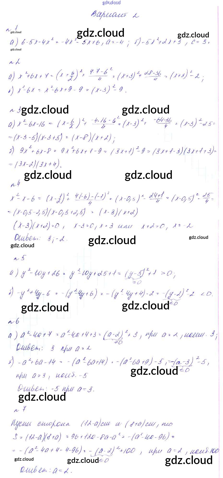 Ответ на задание Вариант 2 Дидактические материалы Алгебра  за 7 (седьмой) класс Феоктистов  Углубленный уровень 2016