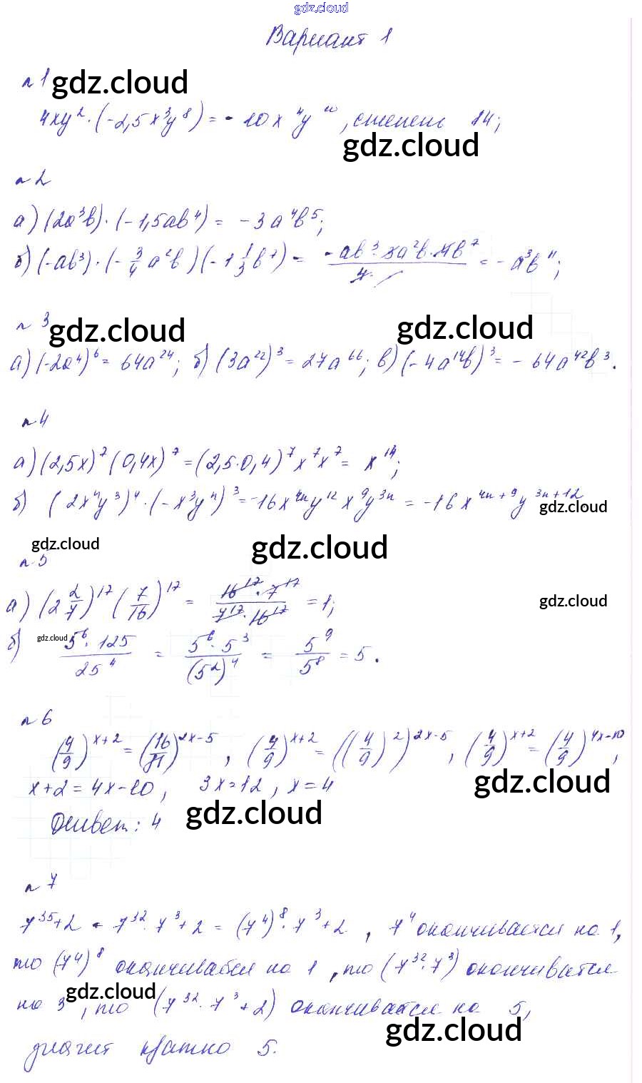 Ответ на задание Вариант 1 Дидактические материалы Алгебра  за 7 (седьмой) класс Феоктистов  Углубленный уровень 2016