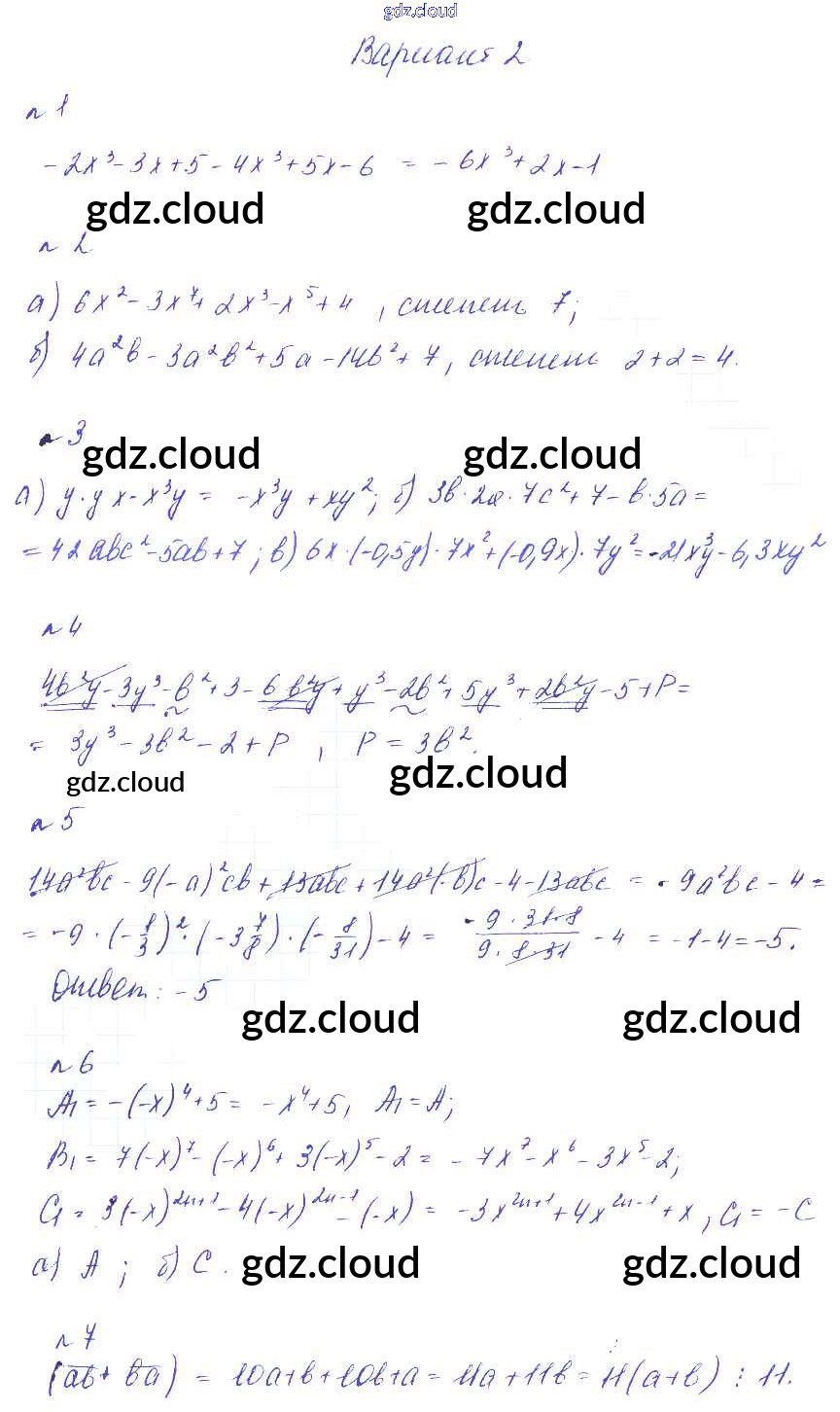 Ответ на задание Вариант 2 Дидактические материалы Алгебра  за 7 (седьмой) класс Феоктистов  Углубленный уровень 2016