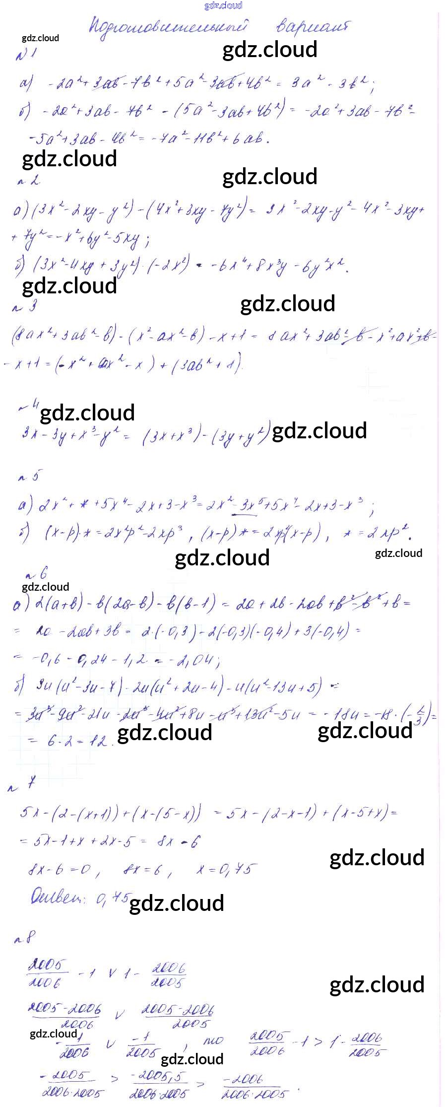 СР-7 Ответы к самостоятельным работам по Алгебре 7 класс Дидактические материалы Феоктистов  Углубленный уровень  Мнемозина