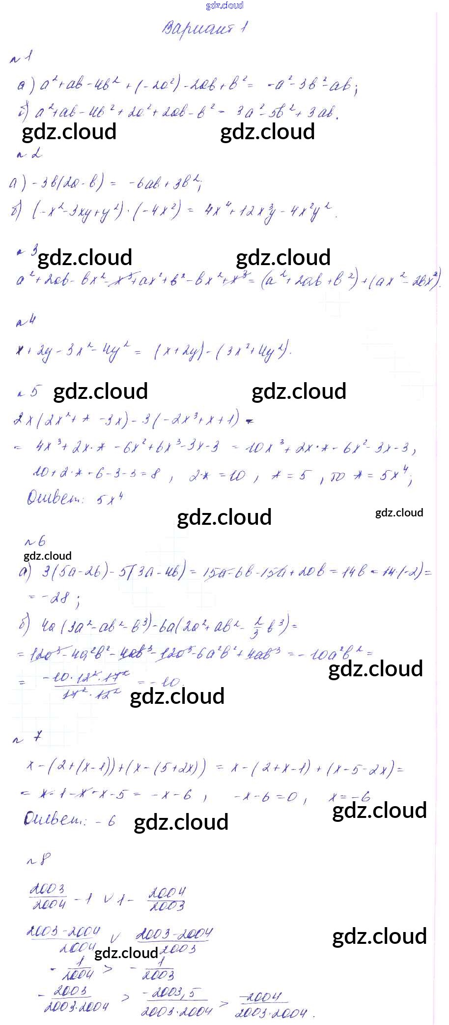 Ответ на задание Вариант 1 Дидактические материалы Алгебра  за 7 (седьмой) класс Феоктистов  Углубленный уровень 2016