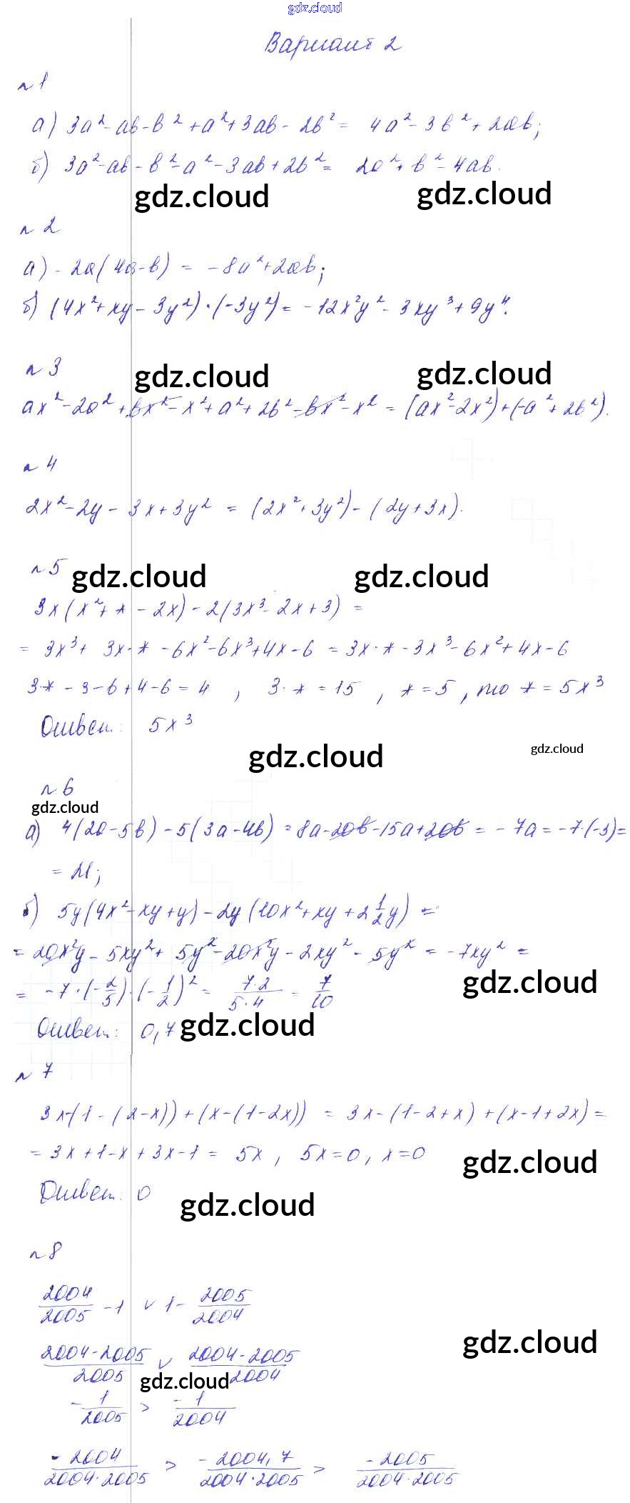 Ответ на задание Вариант 2 Дидактические материалы Алгебра  за 7 (седьмой) класс Феоктистов  Углубленный уровень 2016