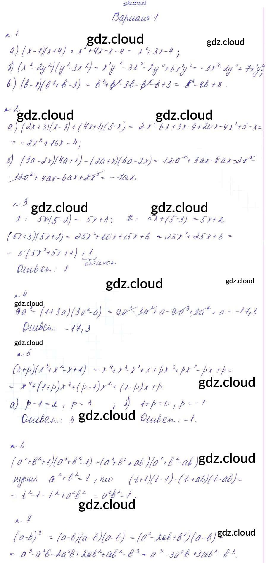 Ответ на задание Вариант 1 Дидактические материалы Алгебра  за 7 (седьмой) класс Феоктистов  Углубленный уровень 2016