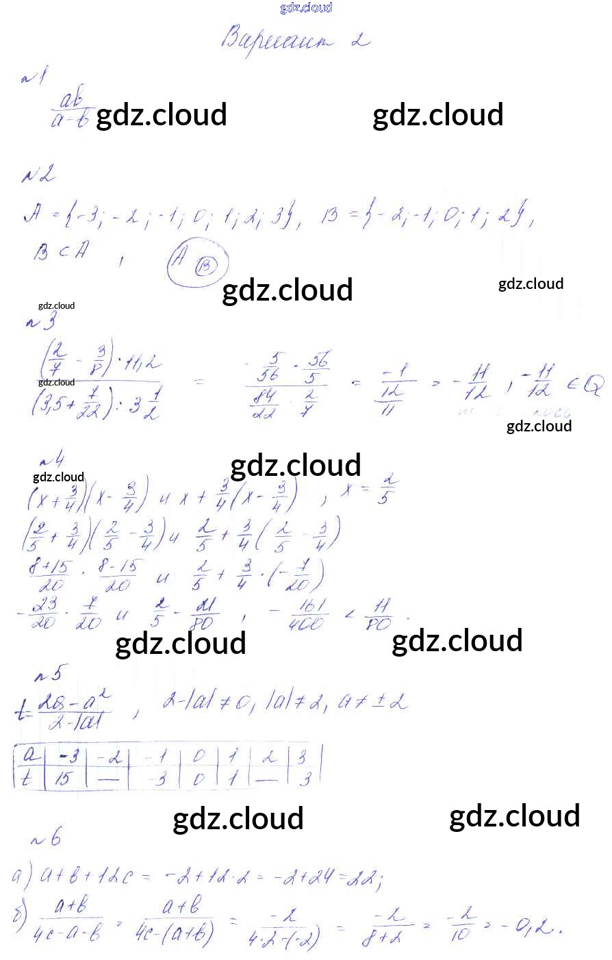 Ответ на задание Вариант 2 Дидактические материалы Алгебра  за 7 (седьмой) класс Феоктистов  Углубленный уровень 2016