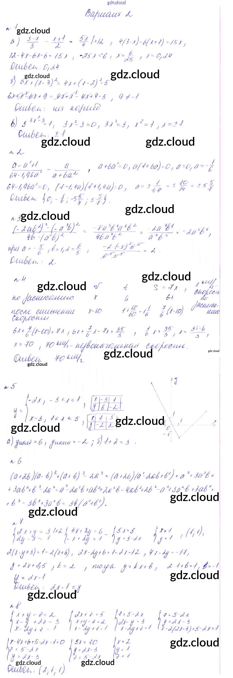 Ответ на задание Вариант 2 Дидактические материалы Алгебра  за 7 (седьмой) класс Феоктистов  Углубленный уровень 2016
