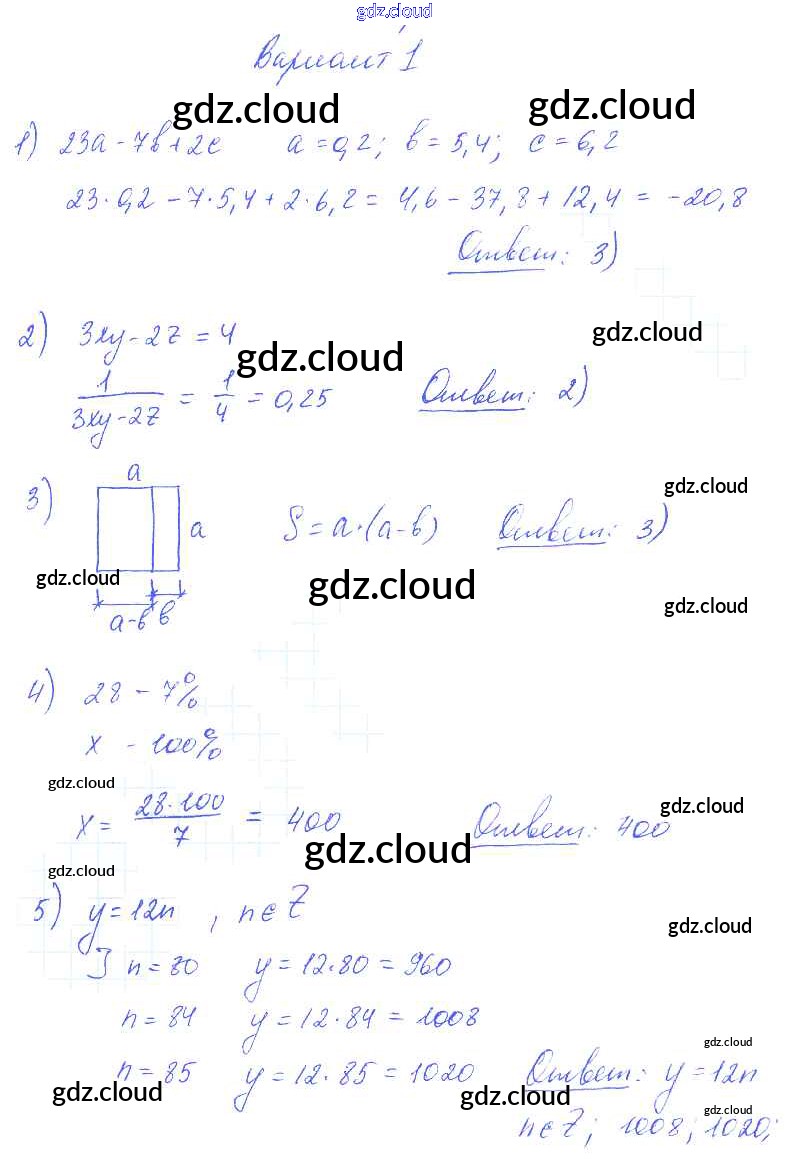Ответ на задание вариант 1 Самостоятельные и контрольные работы Алгебра  за 7 (седьмой) класс Глазков, Гаиашвили УМК  2019