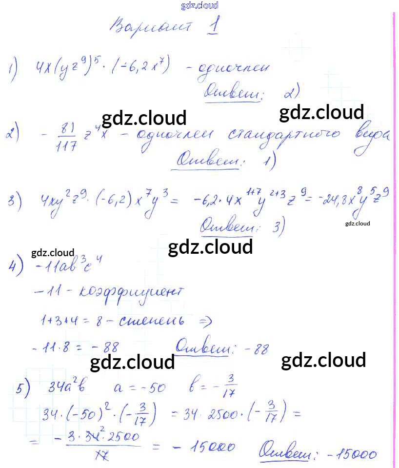Ответ на задание вариант 1 Самостоятельные и контрольные работы Алгебра  за 7 (седьмой) класс Глазков, Гаиашвили УМК  2019