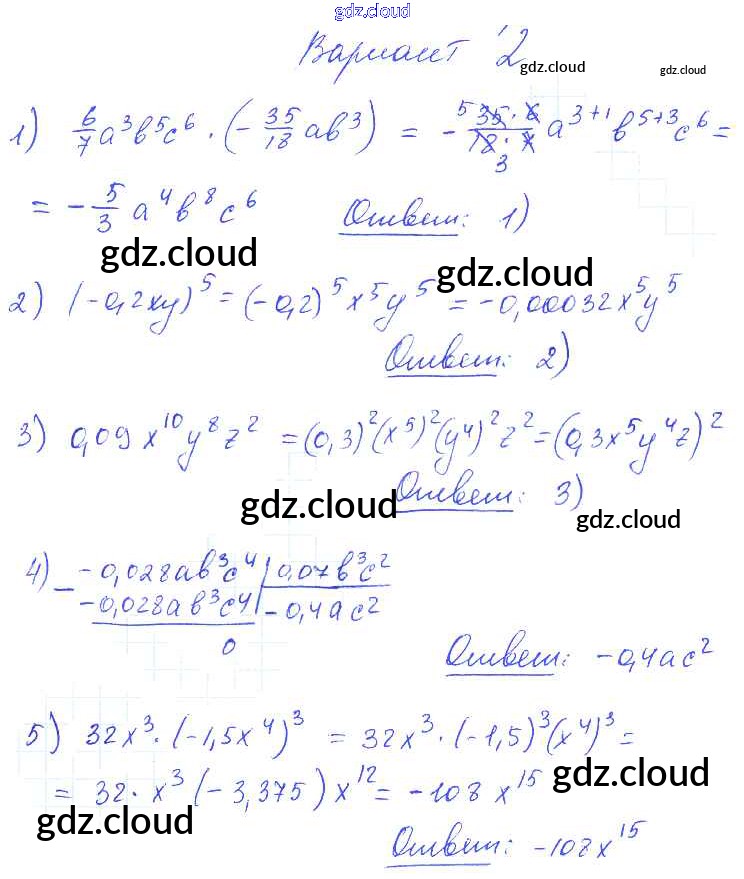 Ответ на задание вариант 2 Самостоятельные и контрольные работы Алгебра  за 7 (седьмой) класс Глазков, Гаиашвили УМК  2019