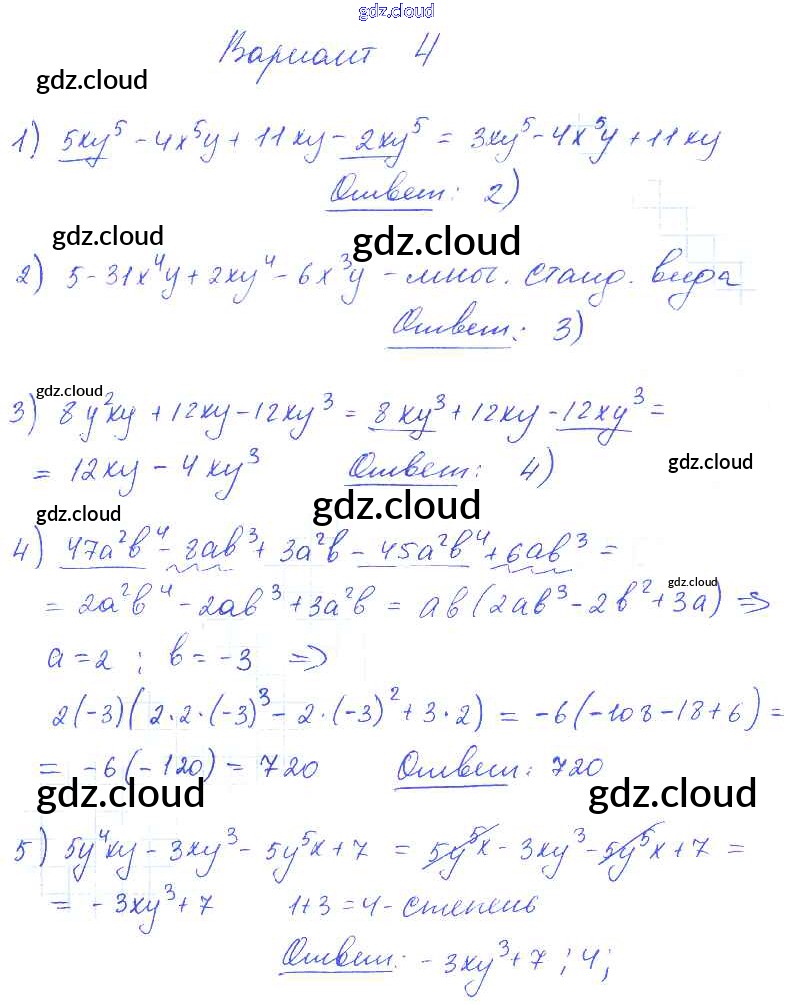 Ответ на задание вариант 4 Самостоятельные и контрольные работы Алгебра  за 7 (седьмой) класс Глазков, Гаиашвили УМК  2019