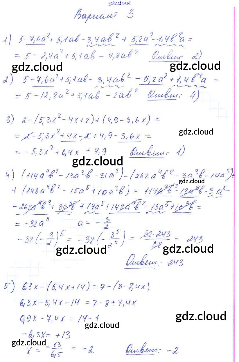 Ответ на задание вариант 3 Самостоятельные и контрольные работы Алгебра  за 7 (седьмой) класс Глазков, Гаиашвили УМК  2019