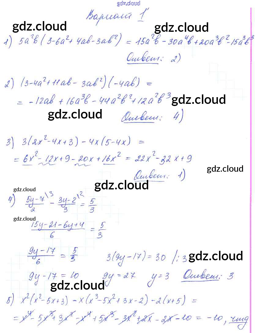 Ответ на задание вариант 1 Самостоятельные и контрольные работы Алгебра  за 7 (седьмой) класс Глазков, Гаиашвили УМК  2019