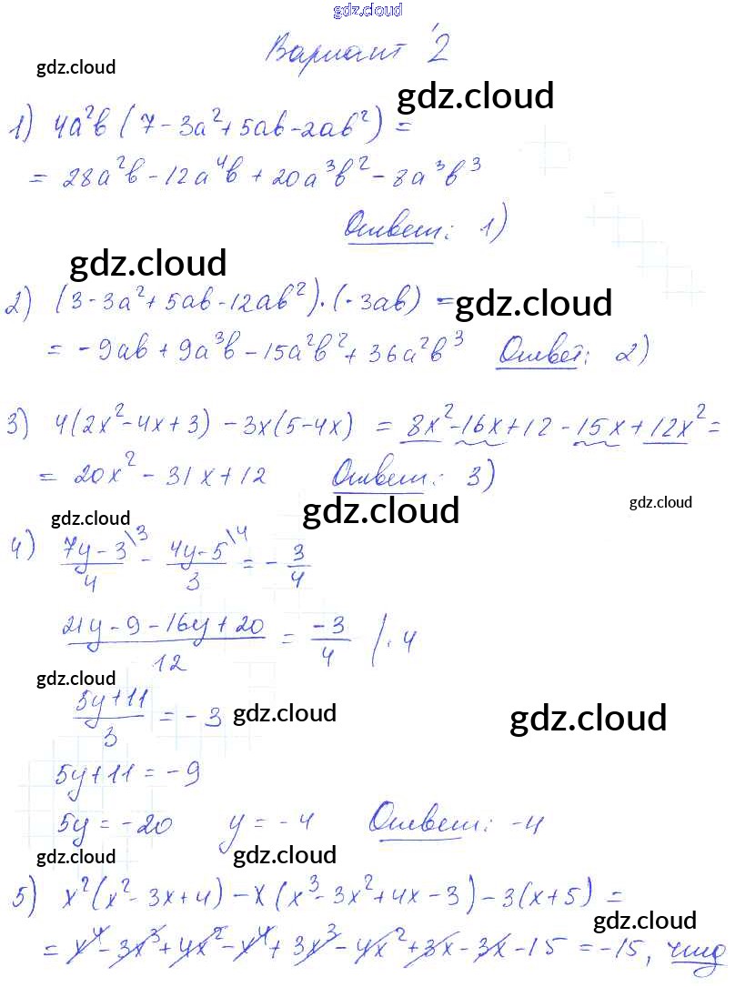 Ответ на задание вариант 2 Самостоятельные и контрольные работы Алгебра  за 7 (седьмой) класс Глазков, Гаиашвили УМК  2019