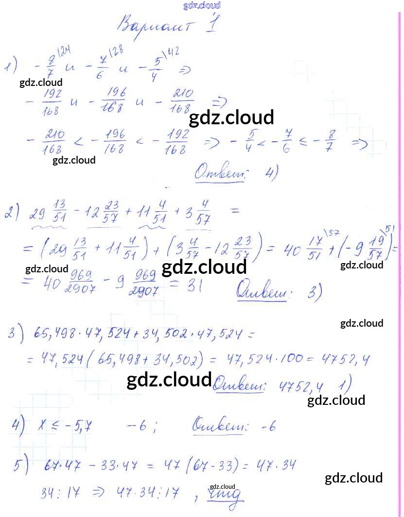 Ответ на задание вариант 1 Самостоятельные и контрольные работы Алгебра  за 7 (седьмой) класс Глазков, Гаиашвили УМК  2019