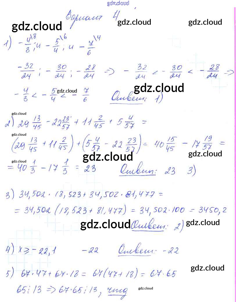Ответ на задание вариант 4 Самостоятельные и контрольные работы Алгебра  за 7 (седьмой) класс Глазков, Гаиашвили УМК  2019