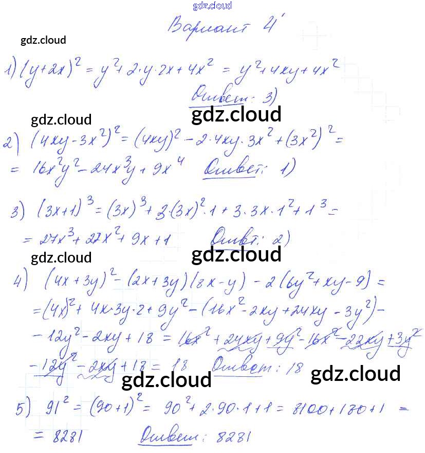 Ответ на задание вариант 4 Самостоятельные и контрольные работы Алгебра  за 7 (седьмой) класс Глазков, Гаиашвили УМК  2019
