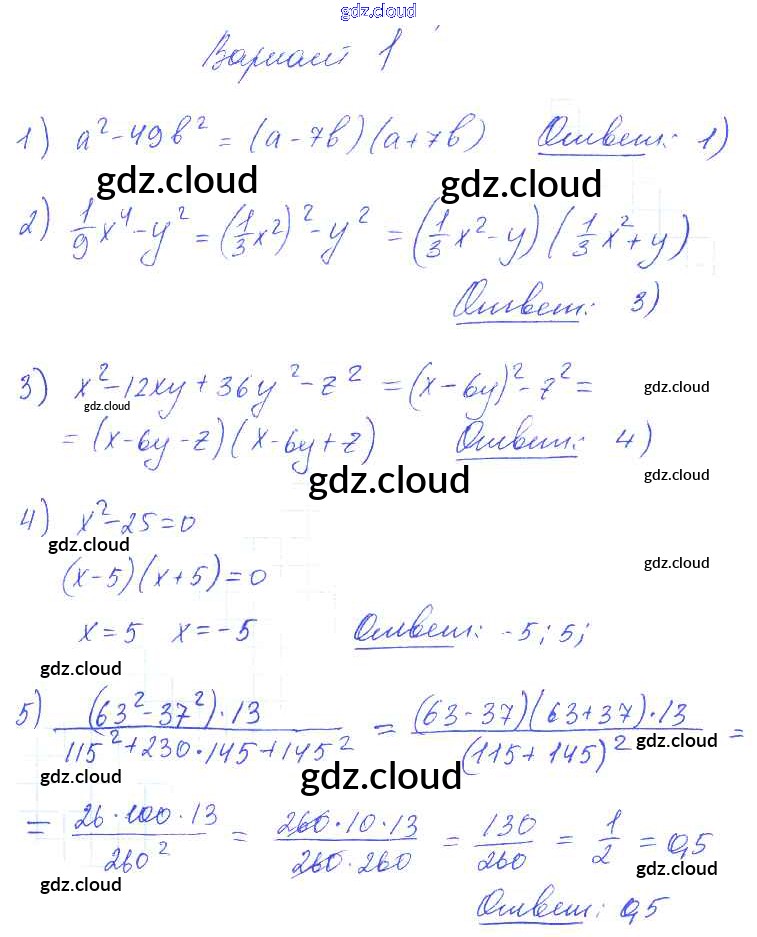 Ответ на задание вариант 1 Самостоятельные и контрольные работы Алгебра  за 7 (седьмой) класс Глазков, Гаиашвили УМК  2019