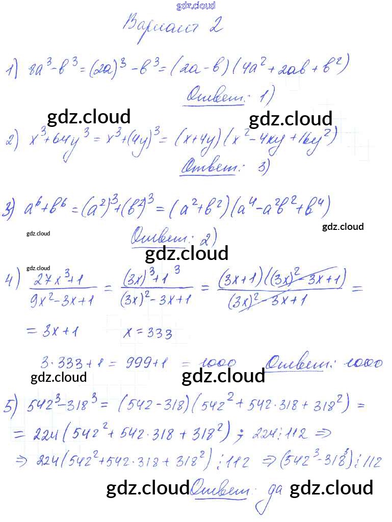 Ответ на задание вариант 2 Самостоятельные и контрольные работы Алгебра  за 7 (седьмой) класс Глазков, Гаиашвили УМК  2019