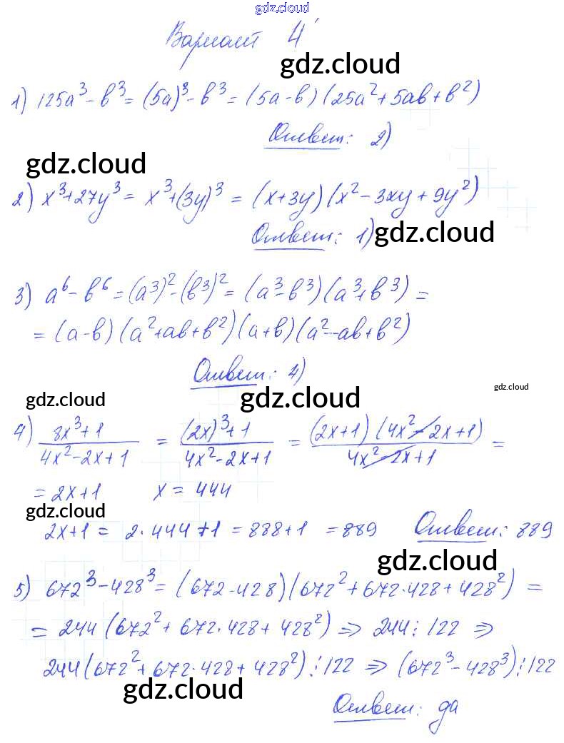 Ответ на задание вариант 4 Самостоятельные и контрольные работы Алгебра  за 7 (седьмой) класс Глазков, Гаиашвили УМК  2019