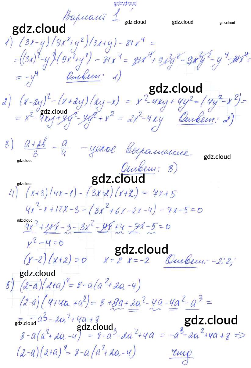 Ответ на задание вариант 1 Самостоятельные и контрольные работы Алгебра  за 7 (седьмой) класс Глазков, Гаиашвили УМК  2019