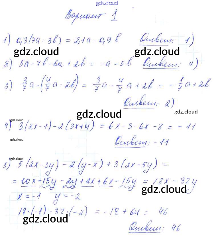 Ответ на задание вариант 1 Самостоятельные и контрольные работы Алгебра  за 7 (седьмой) класс Глазков, Гаиашвили УМК  2019