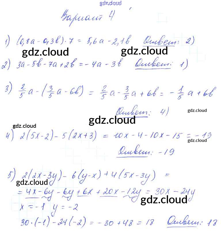 Ответ на задание вариант 4 Самостоятельные и контрольные работы Алгебра  за 7 (седьмой) класс Глазков, Гаиашвили УМК  2019