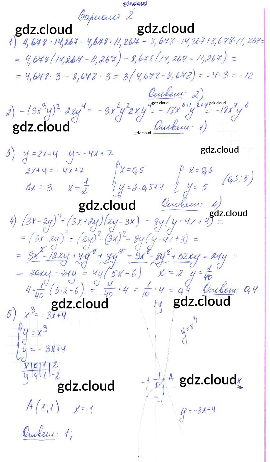 Ответ на задание вариант 2 Самостоятельные и контрольные работы Алгебра  за 7 (седьмой) класс Глазков, Гаиашвили УМК  2019