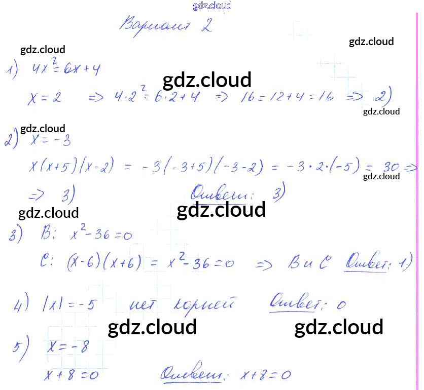 Ответ на задание вариант 2 Самостоятельные и контрольные работы Алгебра  за 7 (седьмой) класс Глазков, Гаиашвили УМК  2019