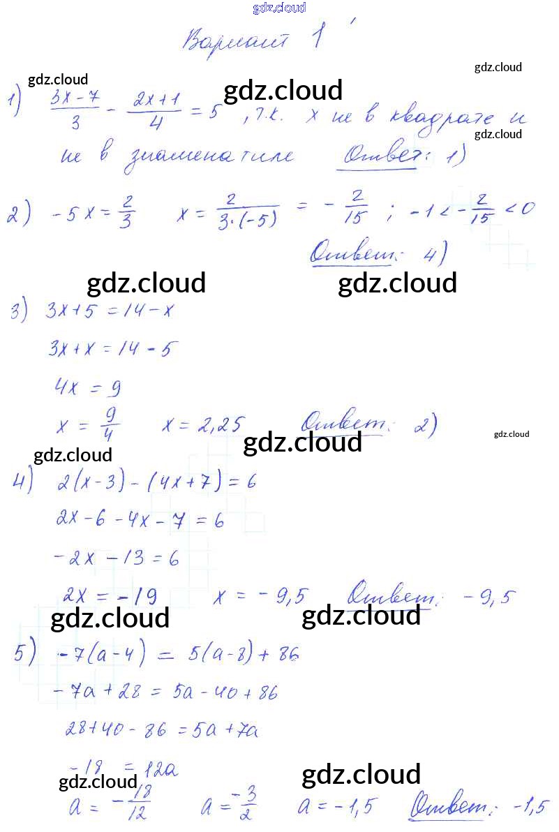 Ответ на задание вариант 1 Самостоятельные и контрольные работы Алгебра  за 7 (седьмой) класс Глазков, Гаиашвили УМК  2019